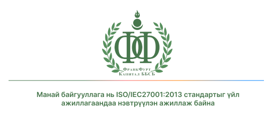 Манай байгууллага 2022 оноос хойш ISO/IEC 27001:2013 стандартийг хэрэгжүүлэн ажиллаж байна.